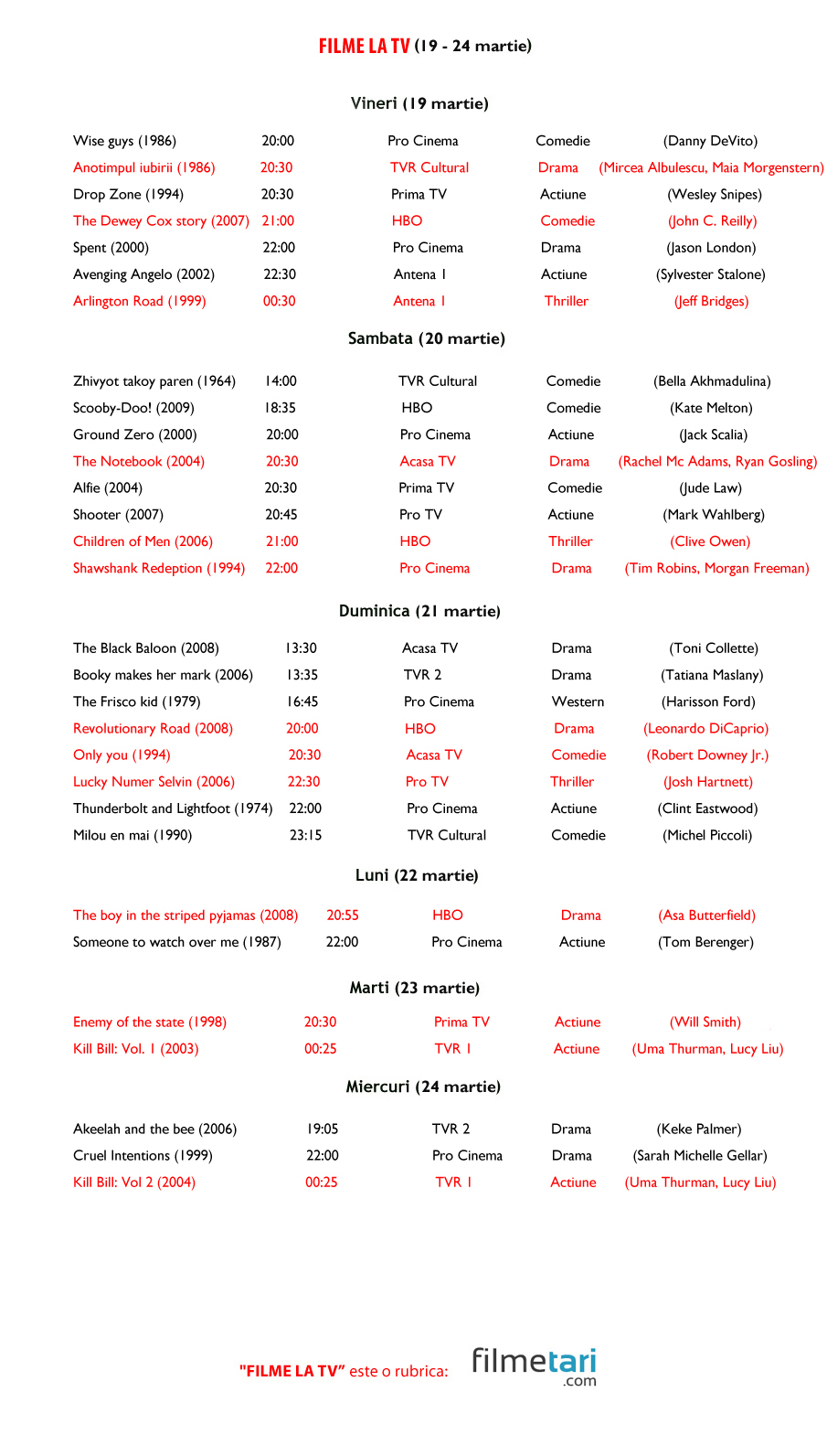 Filme la TV (19-24 martie)